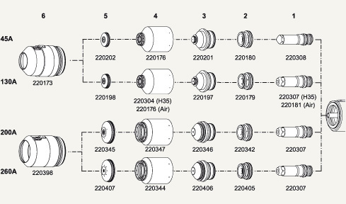 Расходные детали для источников HYPERTHERM HPR130, HPR260, HPR400